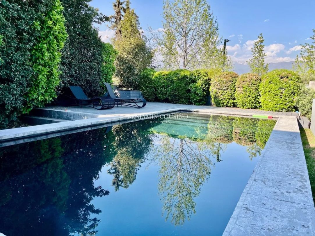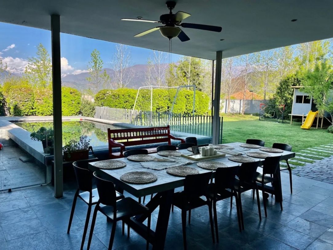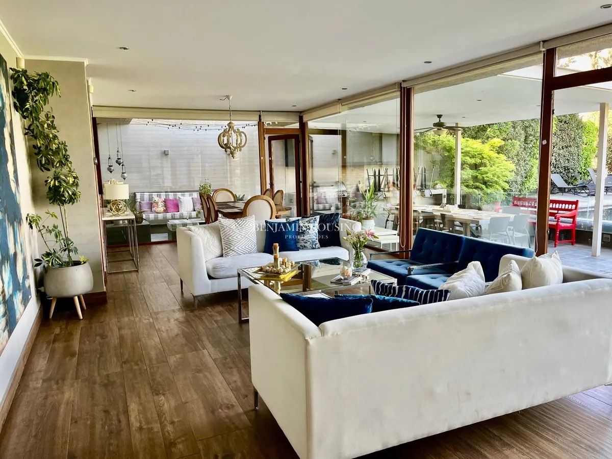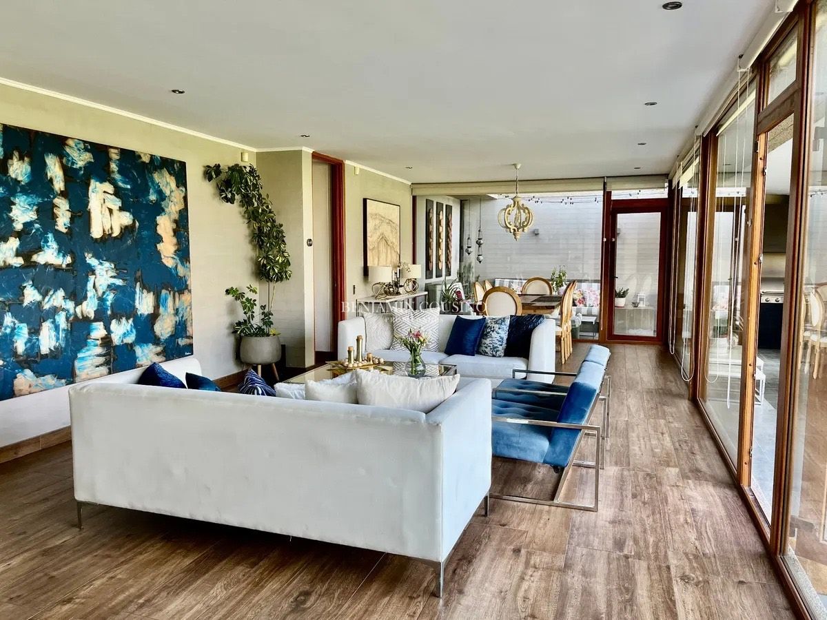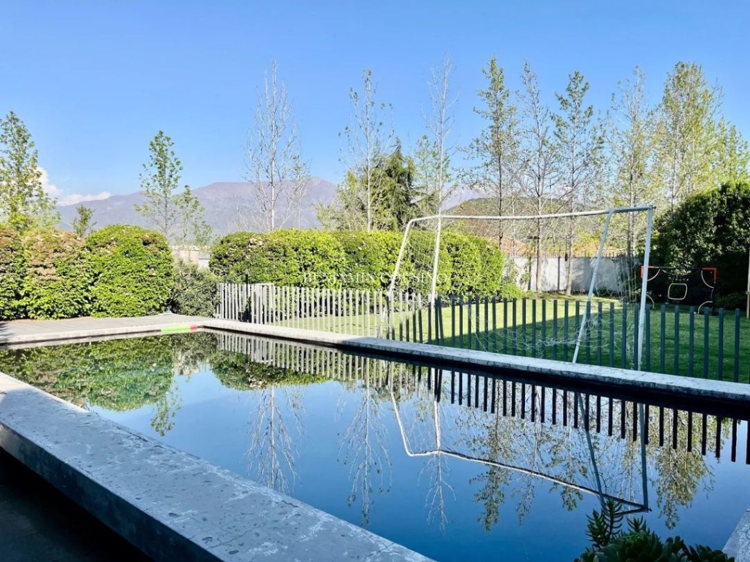 Ubicada en la exclusiva calle Camino de la Ascención en Los Trapenses, Lo Barnechea, esta impresionante casa mediterránea de tres niveles ofrece una combinación perfecta de elegancia, confort y seguridad. Con un metraje total de 405 m2, la propiedad se destaca por su orientación poniente que garantiza luminosidad natural y vistas panorámicas a la cordillera. La casa cuenta con 5 dormitorios, de los cuales 3 son en suite, y 5 baños completos, además de un baño de visitas. Sus amplios espacios incluyen un hall de acceso, un living y un comedor separados que se conectan a una terraza ideal para disfrutar del aire libre. La cocina, equipada con una isla central, es perfecta para quienes disfrutan de la gastronomía y la convivencia familiar. También se encuentra un dormitorio y baño de servicio, así como un escritorio y una sala de estar.