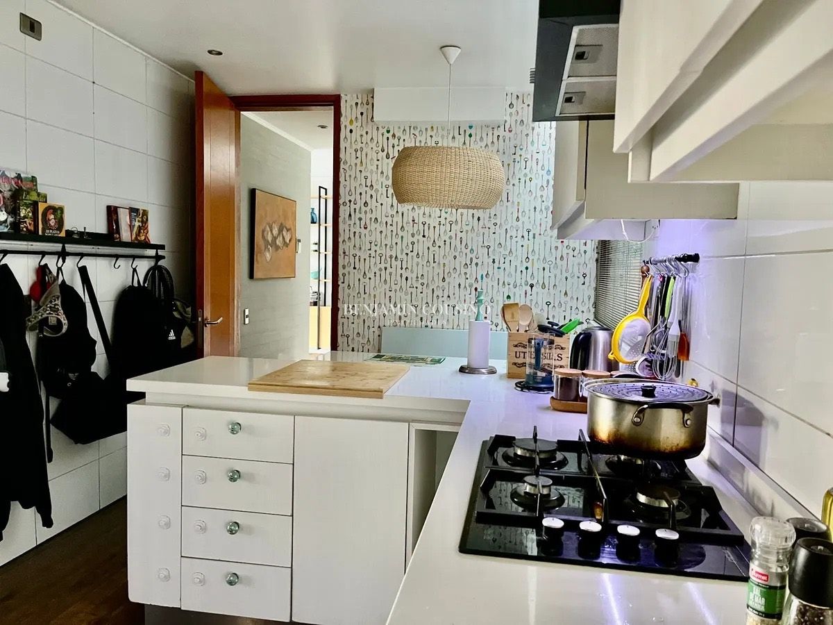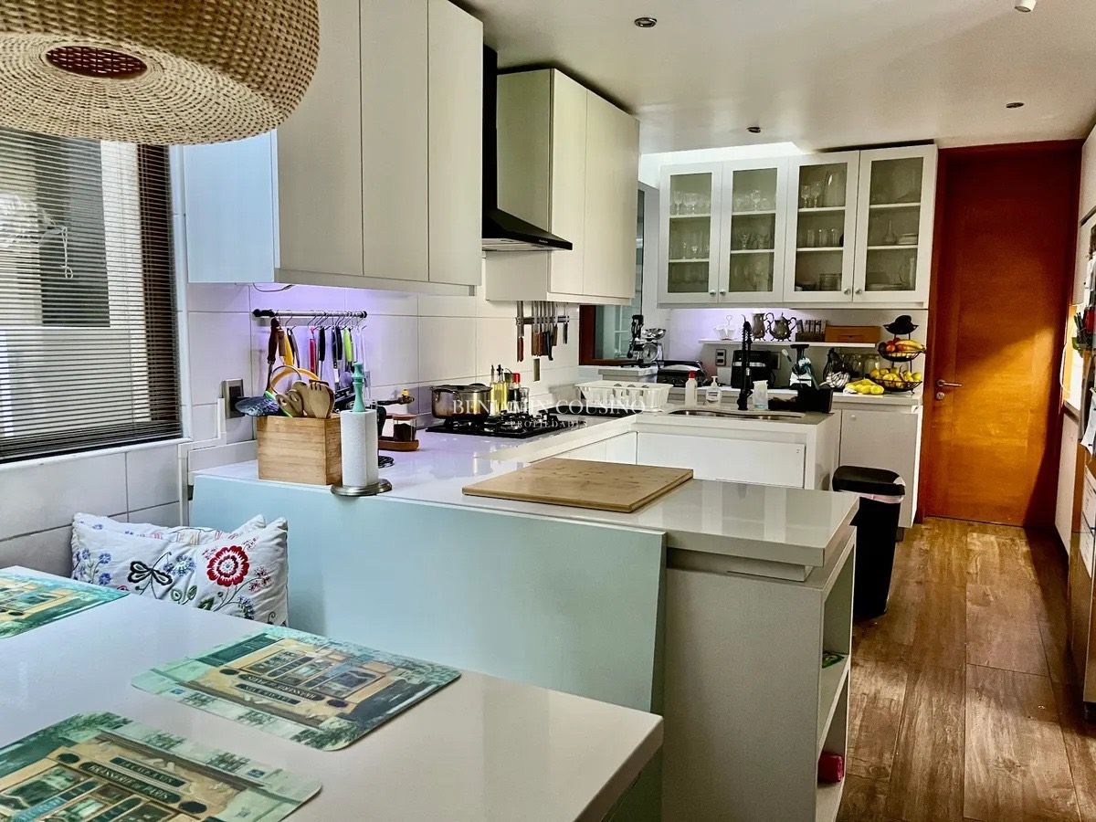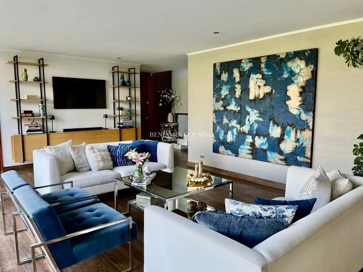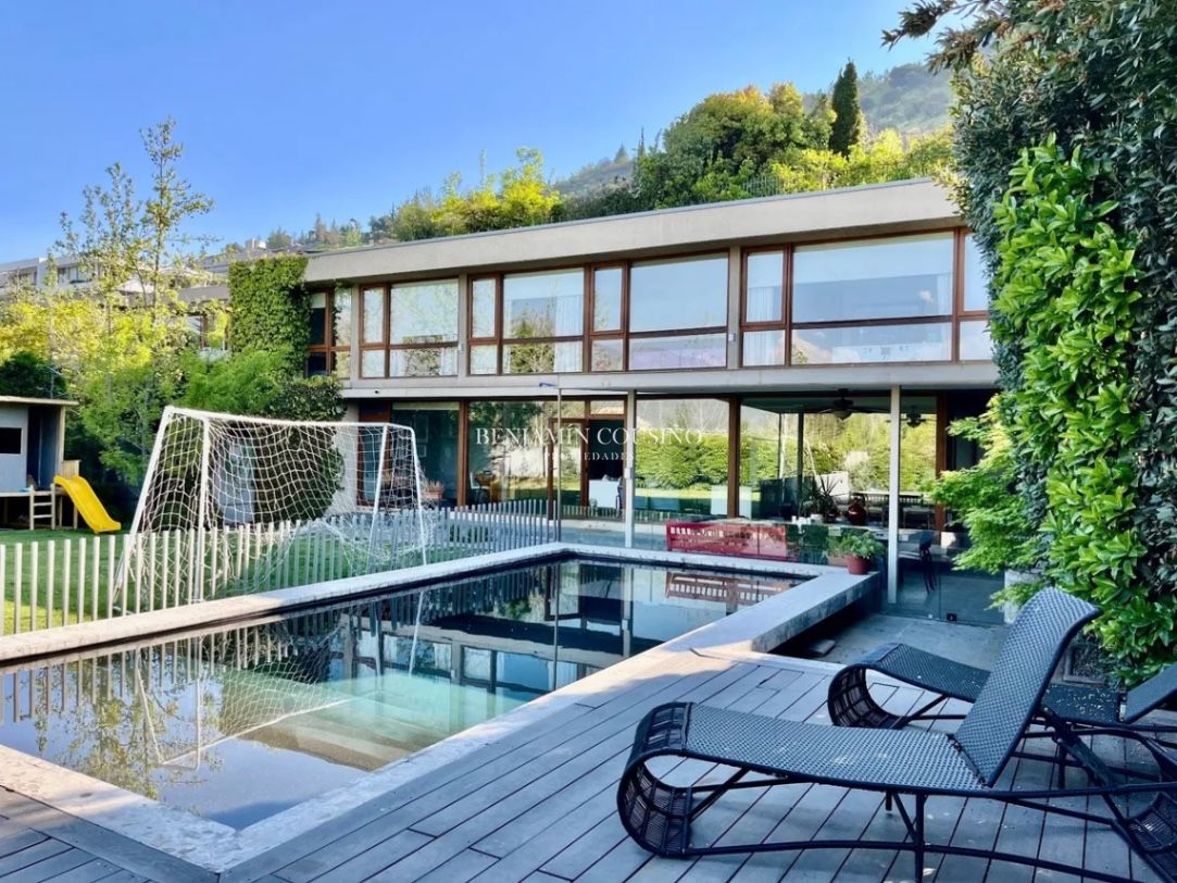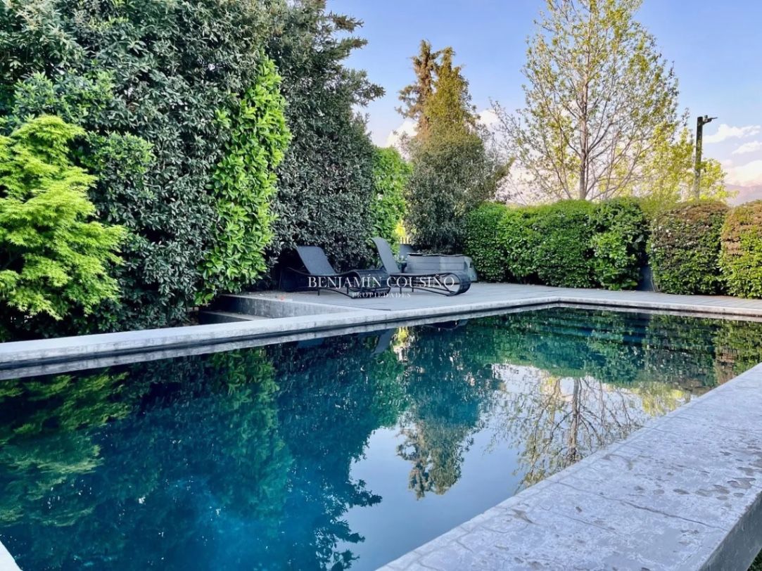 Ubicada en la exclusiva calle Camino de la Ascención en Los Trapenses, Lo Barnechea, esta impresionante casa mediterránea de tres niveles ofrece una combinación perfecta de elegancia, confort y seguridad. Con un metraje total de 405 m2, la propiedad se destaca por su orientación poniente que garantiza luminosidad natural y vistas panorámicas a la cordillera. La casa cuenta con 5 dormitorios, de los cuales 3 son en suite, y 5 baños completos, además de un baño de visitas. Sus amplios espacios incluyen un hall de acceso, un living y un comedor separados que se conectan a una terraza ideal para disfrutar del aire libre. La cocina, equipada con una isla central, es perfecta para quienes disfrutan de la gastronomía y la convivencia familiar. También se encuentra un dormitorio y baño de servicio, así como un escritorio y una sala de estar.