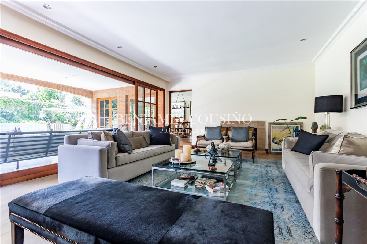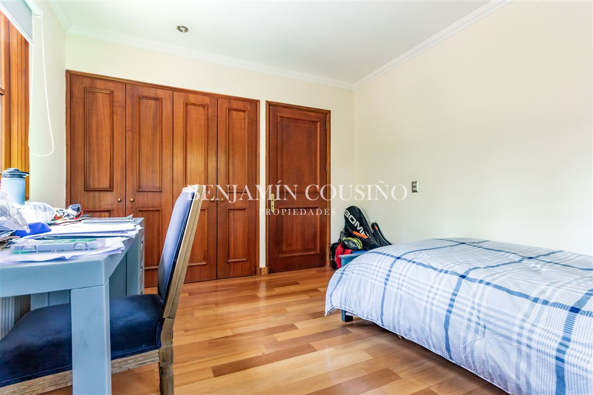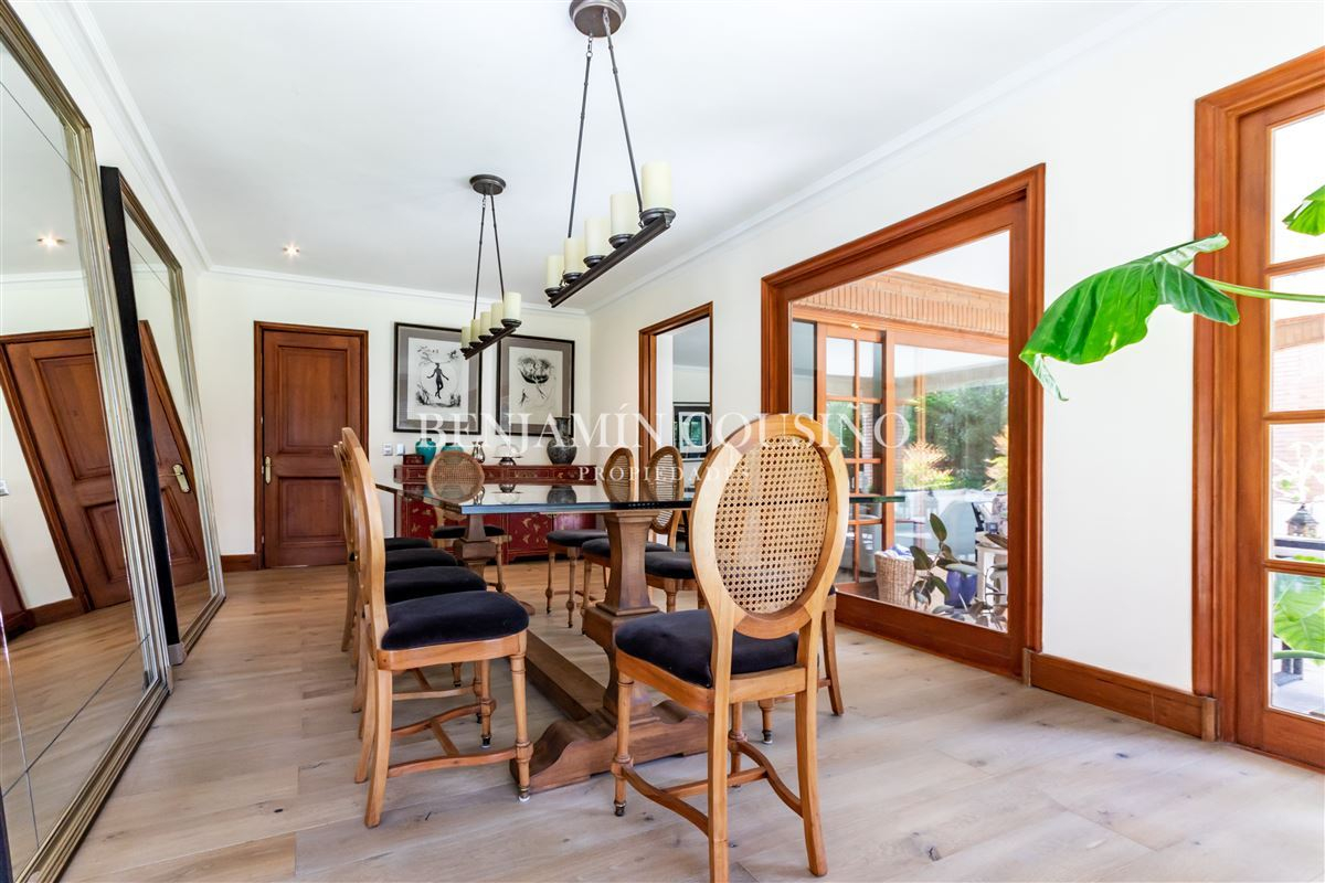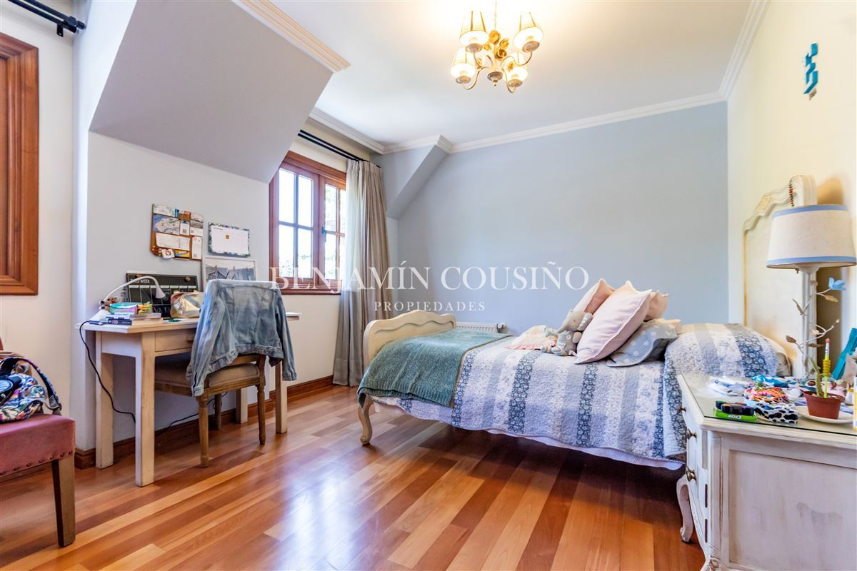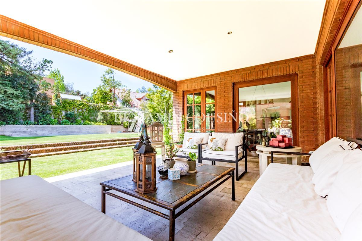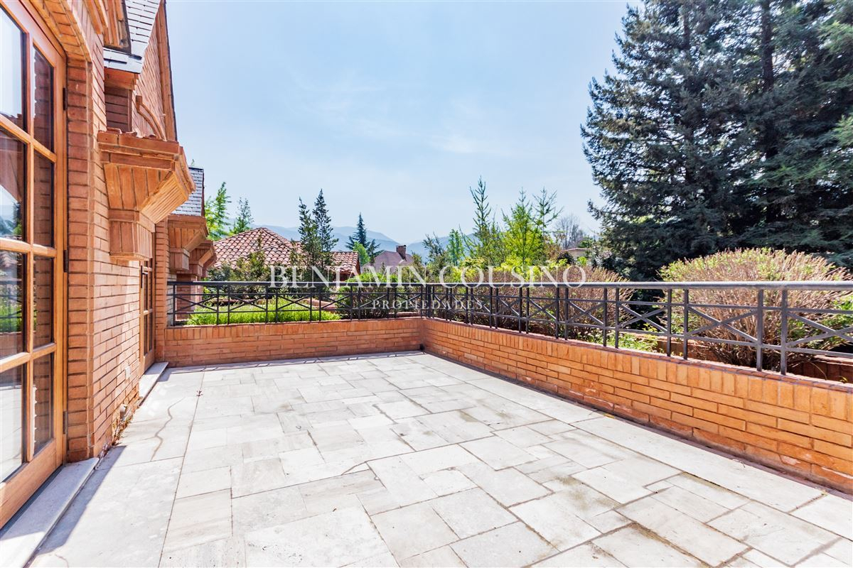 Ventanas termo panel, calefacción por radiadores, baños remodelados, terraza piso de mármol, piscina con vista panorámica, bellos jardines, pieza de servicio, estacionamientos techados, cerco eléctrico.