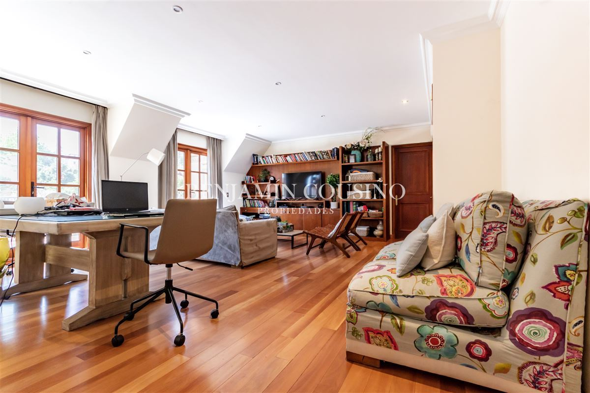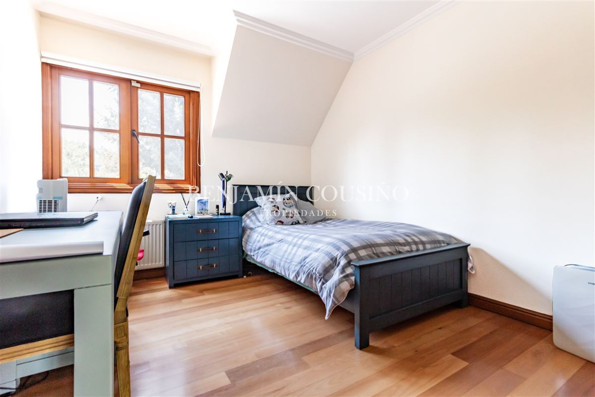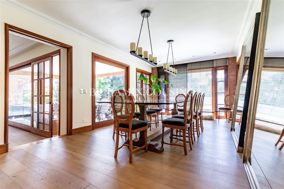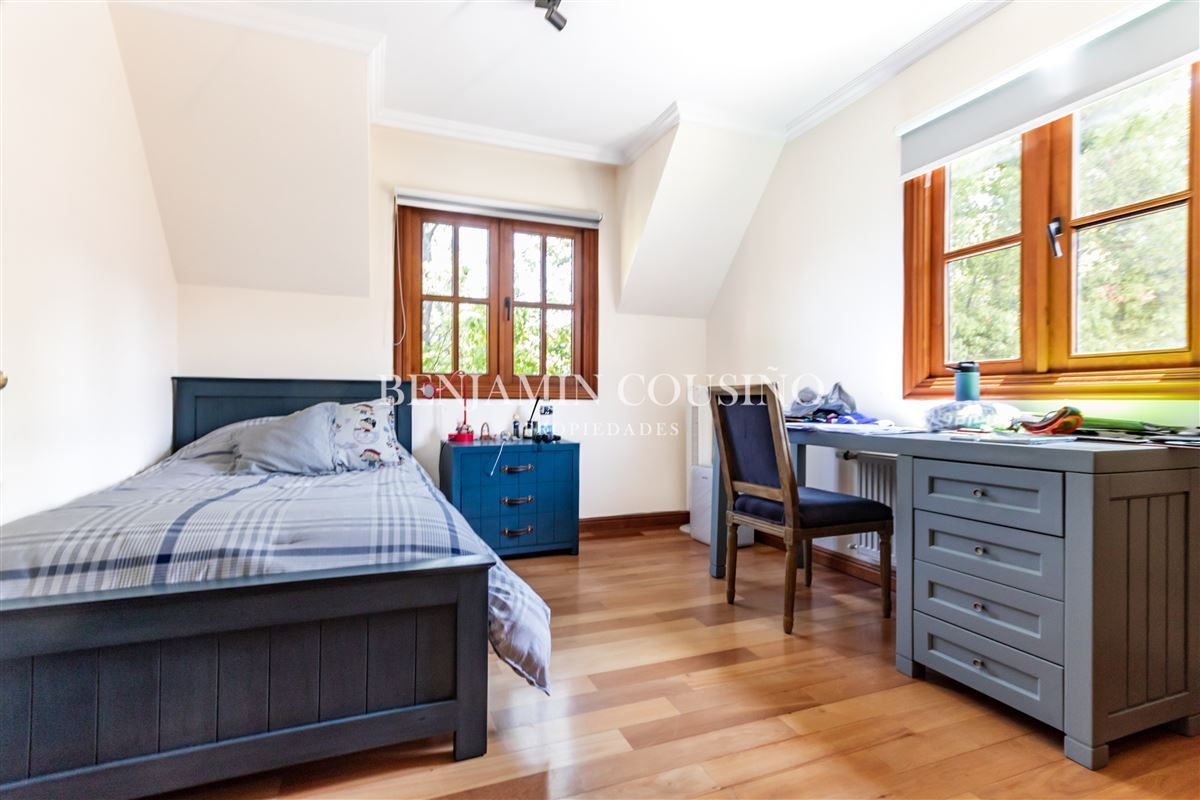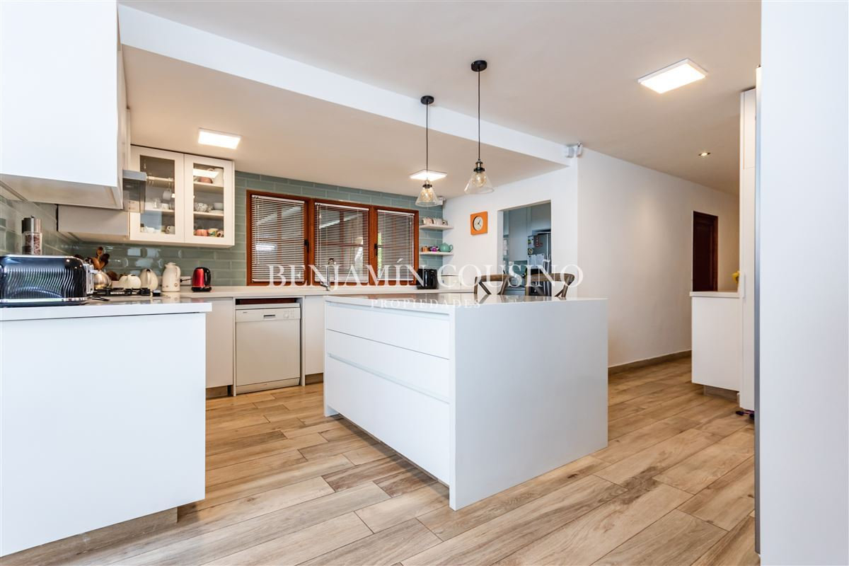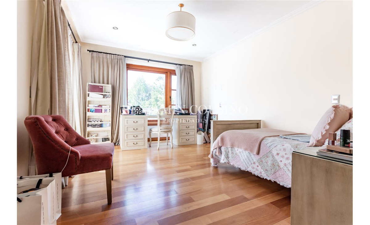Ventanas termo panel, calefacción por radiadores, baños remodelados, terraza piso de mármol, piscina con vista panorámica, bellos jardines, pieza de servicio, estacionamientos techados, cerco eléctrico.
