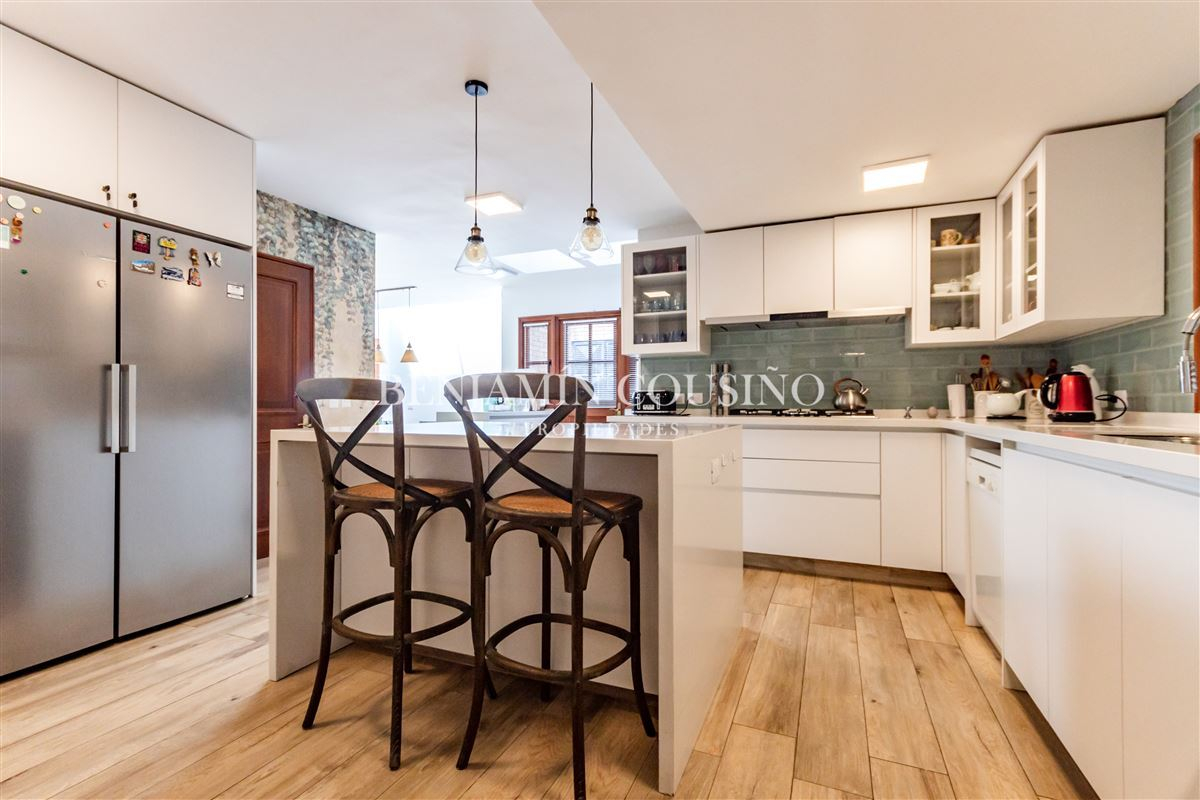 Amplia cocina completamente equipada y remodelada, mesón isla, comedor de diario con salida a logia cerrada y patio de servicio.