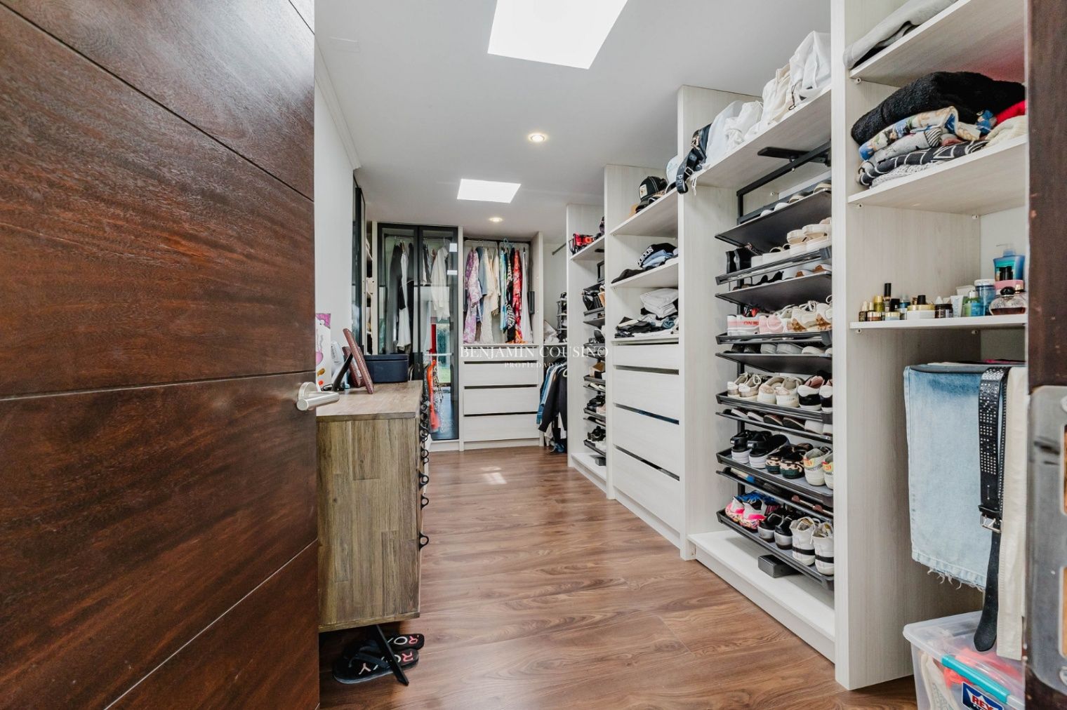 Dormitorio principal en suite con baño con doble lavamanos, doble ducha, jacuzzi, 2 walk in closet de gran tamaño con puertas y porta zapatos.